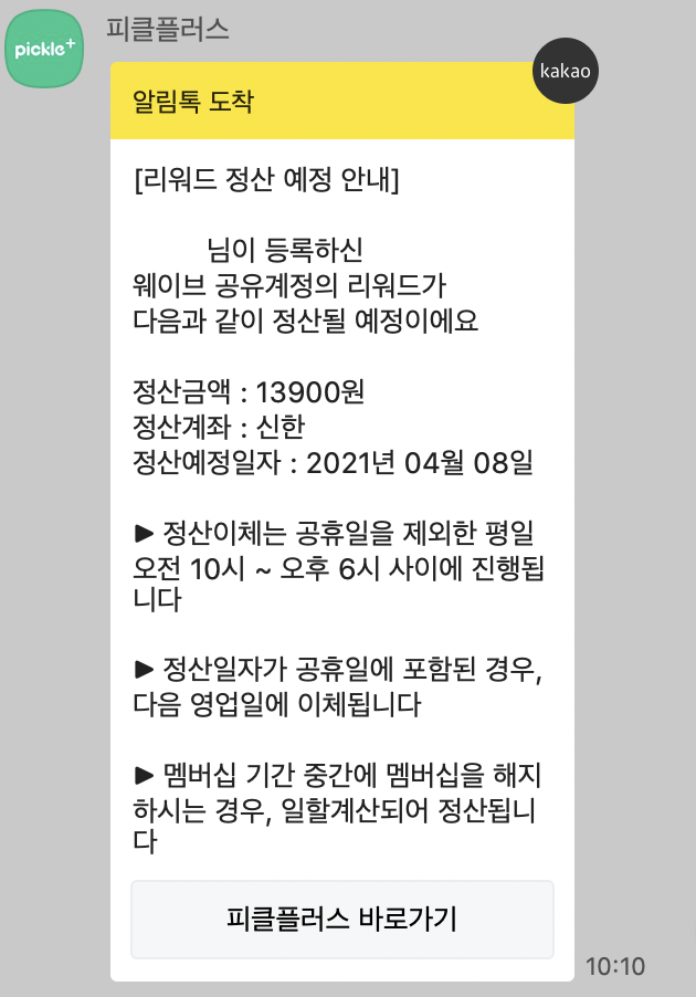 피클플러스 파티원으로 가입했다가,